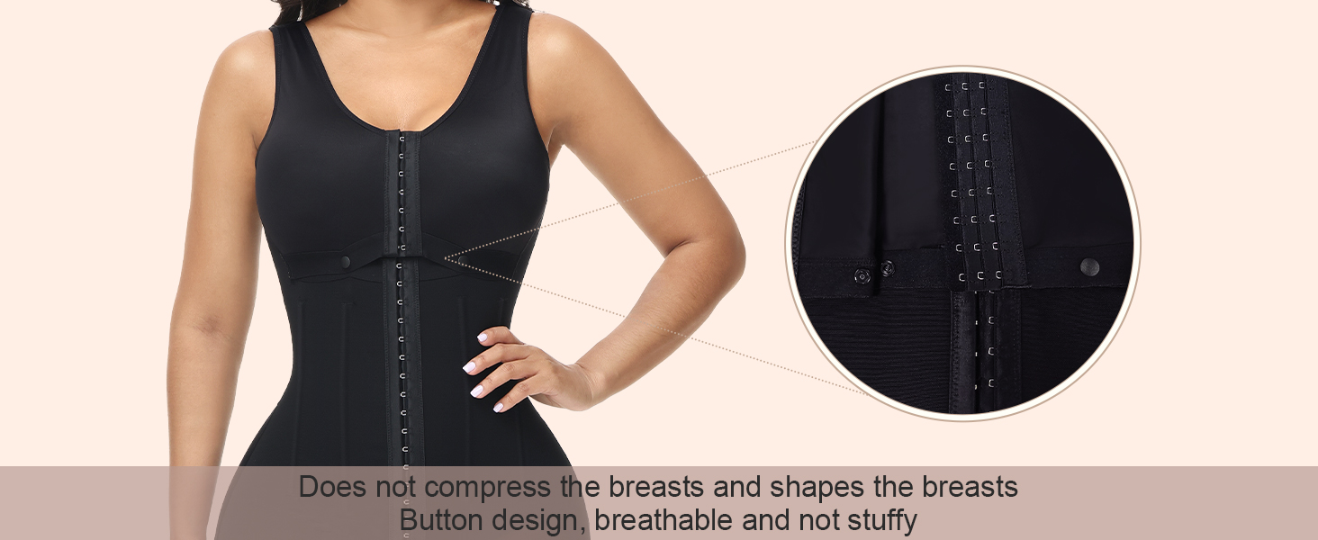 - 【MAINTAIN BREASTS】The bra area is equipped with buttons and semi open ventilation (also suitable for breastfeeding). There are three adjustable hooks in the middle to adapt to different chest shapes. The bra area is made of double-layer material without padding.You can wear curvy fajas colombianas directly or place your own breast pads. The shapewear bodysuit is padded and equipped with three hooks to reduce shoulder pressure.