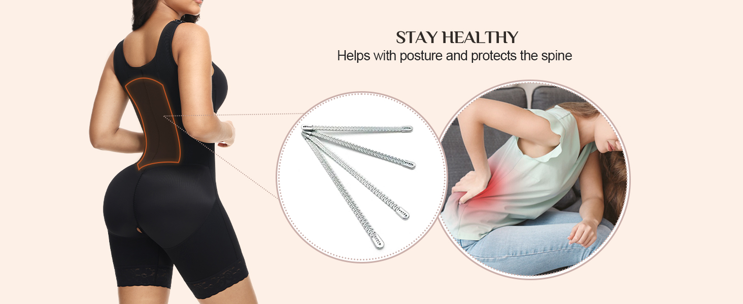 - 【SHAPING THE WAIST AND ABDOMEN】This faja shapewear have three rows of hooks, which can effectively control abdominal fat. The waist can be adjusted in three steps to adapt to the occasion and comfort. Seven slender flexible steel bars are integrated into the abdomen, back, and waist areas to reduce abdominal fat and create a charming S-curve, in addition, it can also improve posture and relieve back pain.